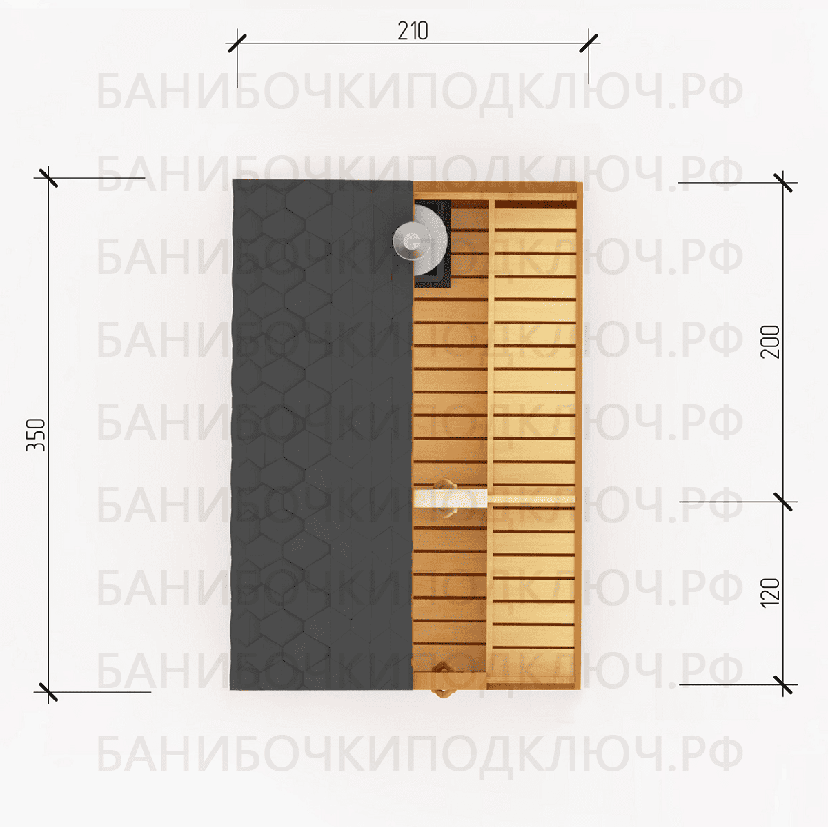 парилка - 200 см, предбанник - 120 см